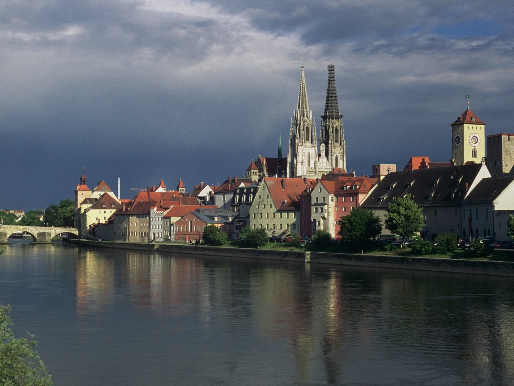 Regensburg: Steinerne Brücke und Dom (10. Juli 2004)